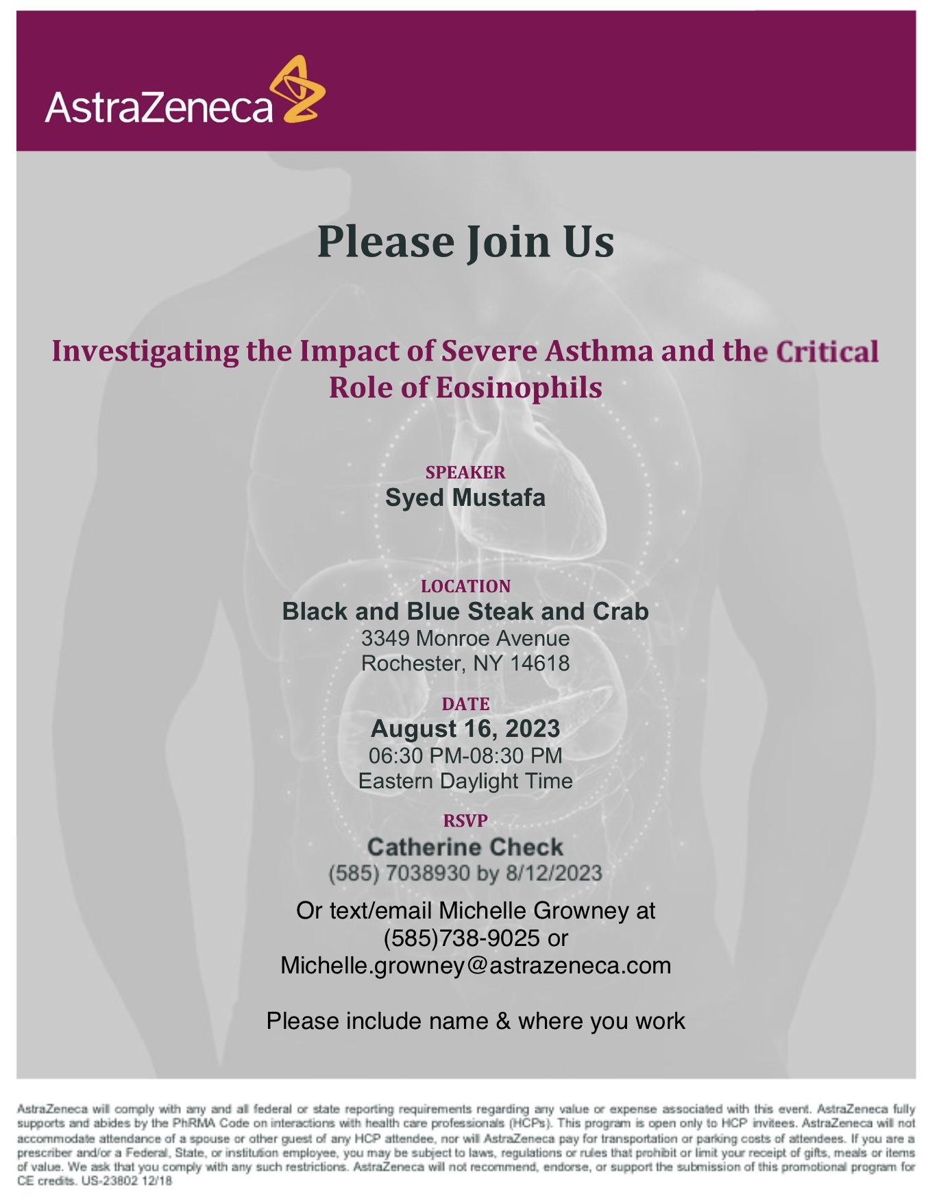 August 16 Investigating the Impact of Severe Asthma and the Critical Role of Eosinophils Membership required to view venue and time details